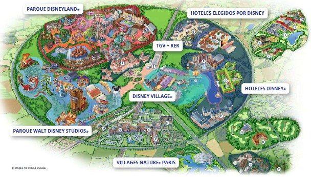 El complejo de Disneyland París se encuentra dividido en dos parques de atracciones, el parque Disneyland y el parque Walt Disney Studios, y cuenta con diversos hoteles y actividades de ocio en los alrededores.