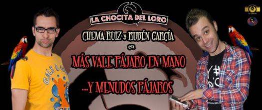 Los humoristas Rubén García y Chema Ruiz llegan a La Chocita del Loro de Gran Vía de Madrid el día 31 de enero de 2015 con su monólogo 'Más vale pájaro en mano...y menudos pájaros'. Chema Ruiz nos deleitará con su humor canalla, su cercanía y sus gracias sin ...